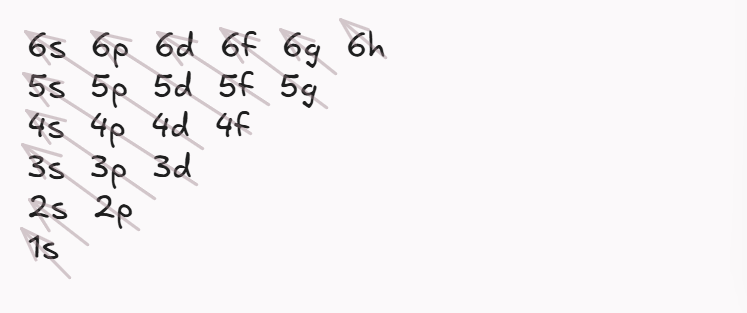 * **Aufbau principle**, electrons fill the lowest energy levels first