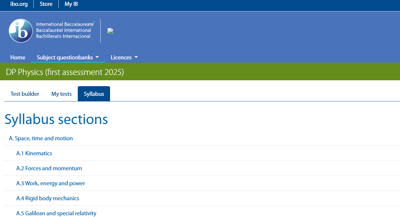 ### [IBdocs](https://dl.ibdocs.re/IB%20QUESTIONBANKS/6.%20Sixth%20Edition%20-%20Group%204%202025/questionbank/en/teachers/ibdocs2/questionbanks/59-dp-physics-first-assessment-2025/syllabus_sections.html)